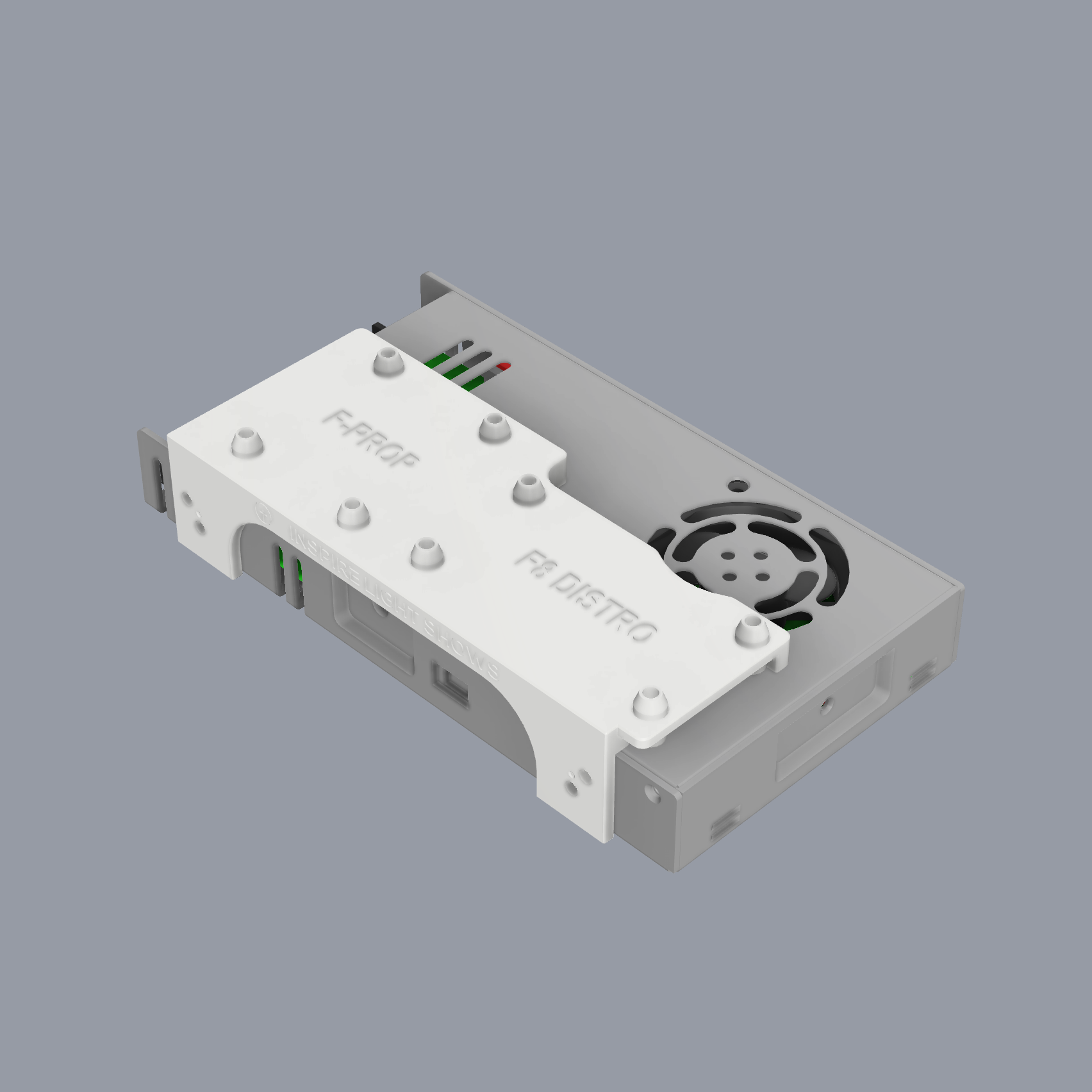 These are the STL files for making a 3D printed mounting bracket for the Falcon F-Prop and Falcon F8 Distro (v1.02 or newer) that attaches to a Meanwell LRS-350 or LRS-600 power supply. It also features dimples that can be drilled out to accommodate a variety of generic 350W power supplies, offering additional flexibility. The mount features our press fit standoffs which lock into place and greatly simplify installation as you no longer have loose standoffs that can shift when positioning the board. They need to be printed separately from the primary mount and then aligned over the openings on the deck of the mount and simply tapped gently into place until fully seated and secure using a small hammer or mallet. The controller mounting holes are self-threading and sized for 6-32 x 1/2″ screws and the mount attaches to the side of Meanwell LRS power supplies using two M4 x 8mm screws. Compatible with our Ammo Box Mounting System v3 and Voltage display mounts.